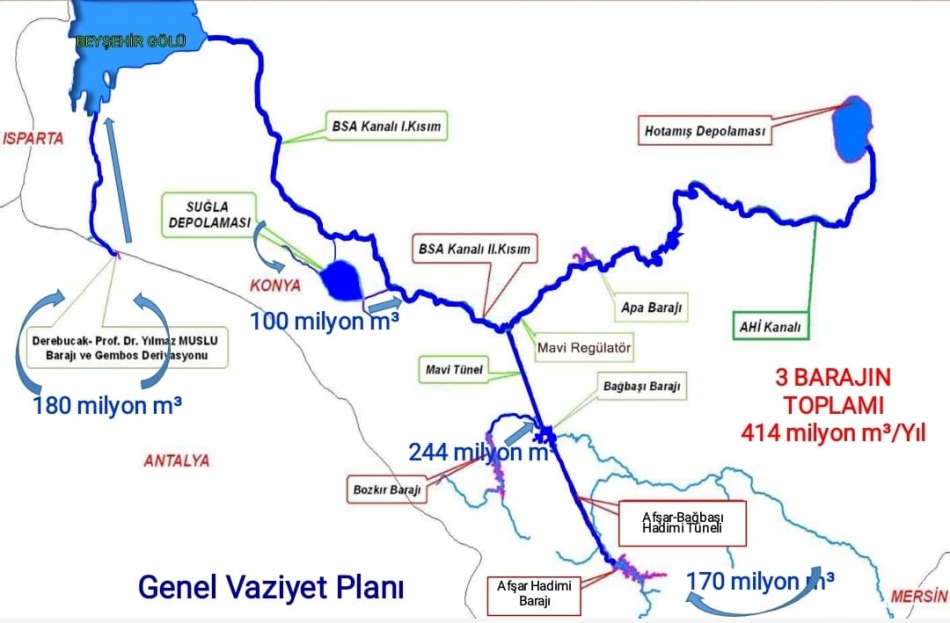 Bundan iki yıl evvel ve sonrasında yaptığımız açıklamalarda 125 metre uzunluğundaki kanalın yapımının tamamlandığını, 25 milyon bedelle kanal sanat yapıları tamamlama ve iyileştirilmesi ihalesi yapıldığını ve 19 kilometre uzunluğunda Afşar, Bağbaşı arası Hadimi tüneli yapımında 3,6 km açılan tünelin sonrasında 5.6 km ye ulaştığını paylaşmıştık.