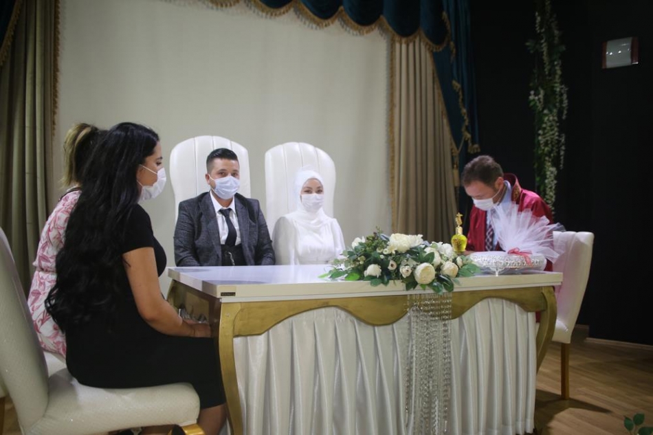 NİKAHLAR SOSYAL MESAFE VE KORONAVİRÜS TEDBİRLERİ KAPSAMINDA KIYILIYOR
