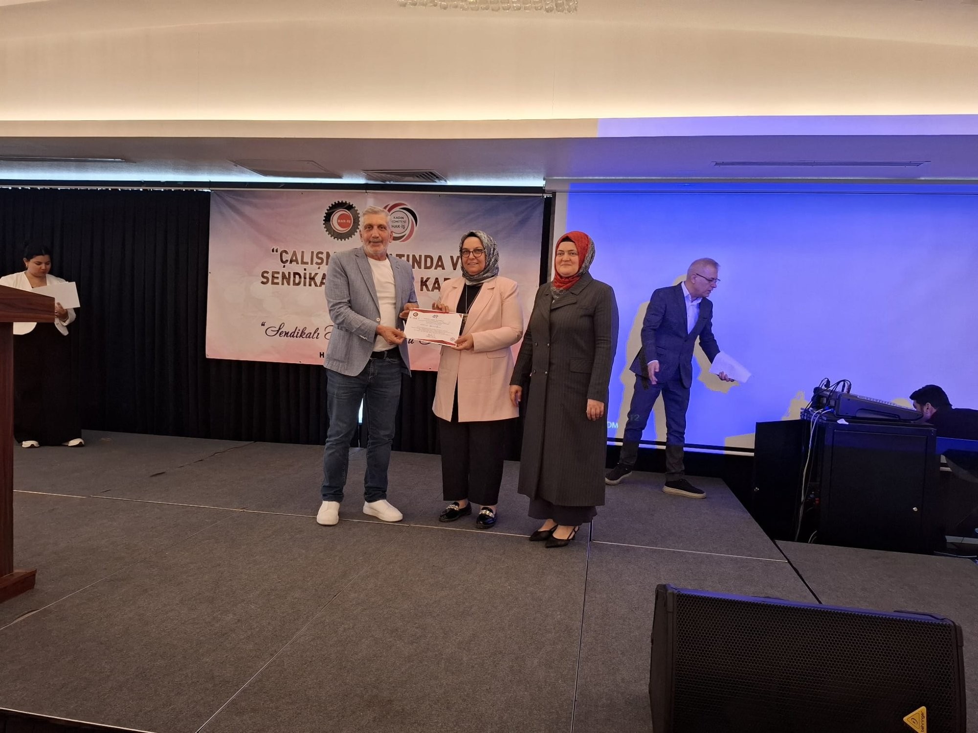“Çalışma Hayatında ve Sendikal Hayatta Kadın” Temalı Eğitim Programı Yoğun Katılımla GerçekleştirildiHak-İş Konfederasyonu Kadın Komitesi tarafından organize edilen “Çalışma Hayatında ve Sendikal Hayatta Kadın” temalı il eğitim programı, 19 Temmuz 2025’te Karaman’da geniş katılımla gerçekleştirildi. Program, Öz Gıda-İş Sendikası'nın ev sahipliğinde, Genel Başkan Mahmut Arslan’ın himayelerinde düzenlenen eğitim programına; Hak-İş Genel Sekreter Yardımcısı ve Kadın Komite Başkanı Fatma Zengin, Öz Gıda-İş Genel Başkan Yardımcıları Tevfik Ali Hançeroğlu ve Adnan Gürsoy, Öz Finans-İş Yönetim Kurulu Üyesi Ömer Rıdvan Yiğit, HAK-İŞ Karaman İl Başkanı Mustafa Karakaş, Kastamonu İl Başkanı Mustafa Çağlı, KMÜ Rektör Yardımcısı Prof. Dr. İdris Nebi Uysal, kadın komite üyeleri ve çok sayıda davetli katıldı.“HAK-İŞ’li Kadınlar Emek Mücadelesinde En Öndeler”Fatma Zengin konuşmasında, “Kadın istihdamının artması, hakların eşit şekilde tanınması için sadece politika üretmiyoruz, sahada da aktif mücadele veriyoruz. HAK-İŞ’li kadınlar sendikal alanda öncü roller üstlenmeye devam edecek.” dedi.“Kadının Elinin Değdiği Her Mücadele Başarıya Ulaşır”Öz Gıda-İş Genel Başkan Yardımcısı Tevfik Ali Hançeroğlu ise, emeğin cinsiyeti olmadığını vurguladı. “Kadınlara iş hayatında hak ettiği değeri vermek, bir vicdan meselesidir. Erkekler, kadın mesai arkadaşlarını kendi aile bireyleri gibi görmelidir.” şeklinde konuştu.“Güçlü Kadın, Güçlü Aile Demektir”HAK-İŞ Karaman İl Başkanı Mustafa Karakaş da, kadının toplumsal hayatta etkin rol almasının toplumun ilerlemesi açısından büyük önem taşıdığını belirterek, “Kadınların çok yönlü bakış açısı ve cesaretiyle daha güçlü bir Türkiye mümkündür.” dedi.Programda;Prof. Dr. Ahmet Sarıtaş, “Fıtratta Farklılık, Haklarda Eşitlik” başlıklı sunumunu yaptı.Hatice Ayhan, “HAK-İŞ Bakış Açısıyla Sendikal Örgütlenme” üzerine konuştu.Hatice Kübra Tok Bilir, “Çalışma Hayatında Şiddeti Önleme ve İş Barışı” konusunu ele aldı.Rahim Aladağ ise motivasyon sunumuyla katılımcılara hitap etti.Ayrıca Fatma Zengin’in moderatörlüğünde, Zühre Çemenkoğlu’nun konuk olduğu “Sendikal Liderlik” paneli gerçekleşti.Bu anlamlı etkinlik, Karaman’da kadınların sendikal mücadelede daha görünür ve etkin hale gelmesi için atılan önemli bir adım olarak değerlendirildi.Programda Hizmet-İş Kadın Komite Başkanı Hatice Ayhan'da kadın sendika üyelerine ayrıca eğitim verdi. Kadınların sendikal yapılar içinde daha etkin ve görünür olması adına önemli bir adım olarak değerlendirilen bu eğitim programı, Karaman’da kadın emeğine verilen önemi bir kez daha gözler önüne serdi.Karaman’dan Bir Örnek: Hatice BağcıoğluProgramın dikkat çeken isimlerinden biri de Öz Sağlık-İş Sendikası Karaman Şube Başkanı Hatice Bağcıoğlu oldu. Türkiye’de kadın şube başkanları arasında örnek gösterilen Bağcıoğlu, sendikal mücadelede kadınların sesi olarak örnek gösterildi. Bağcıoğlu, “Kadınlar sadece temsil edilmekle kalmamalı, karar mekanizmalarında da aktif rol almalıdır.” dedi.Ülker Karaman Fabrikasına ZiyaretProgramın ardından HAK-İŞ Kadın Komitesi üyeleri, Karaman’da bulunan Ülker fabrikasını ziyaret etti. Kadın işçilerle bir araya gelen heyet, üretim süreci hakkında bilgi aldı. Fatma Zengin, sendikal örgütlülüğün iş barışına katkısına dikkat çekerek Yıldız Holding’e teşekkür etti.Eğitim Sertifikaları Takdim EdildiEtkinlik sonunda katılımcılara eğitim sertifikaları ve plaketler takdim edildi. Program, toplu fotoğraf çekimiyle sona erdi.