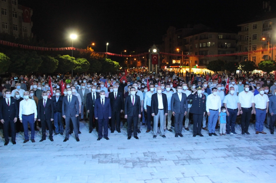 15 Temmuz Demokrasi ve Milli Birlik Günü anma programı sabahın erken saatlerinde başladı. Şehitlik ziyaretleri ile başlayan programlar, akşam meydandaki etkinlikler ile devam etti. Geceye karaman Valisi Mehmet Alpaslan Işık, Karaman Belediye Başkanı Savaş Kalaycı, İl Emniyet Müdürü Ayhan Taş, İl Jandarma Komutanı İsmail Şahin, daire müdürleri, siyasi parti temsilcileri ve çok sayıda vatandaş katıldı. Saygı duruşunda bulunulmasının ardında kalabalık hep birlikte İstiklal Marşı'nı okudu. Okunan Kur’an-ı Kerim'in ardından protokol konuşmalarına geçildi.
