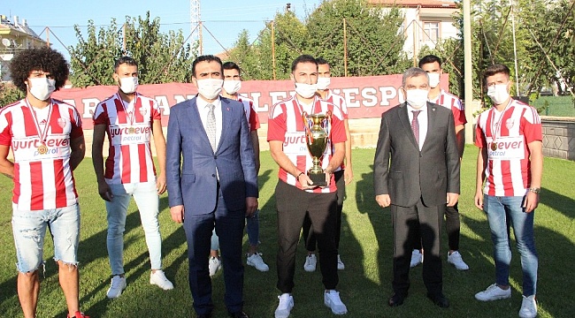 "Türkiye Futbol Federasyonu'nun (TFF) kararıyla" Türkiye 3. Futbol Ligine yükselen karaman Belediyespor, şampiyonluk kupasını Vali Mehmet Alpaslan Işık ile Belediye Başkanı Savaş Kalaycı'nın elinden aldı.