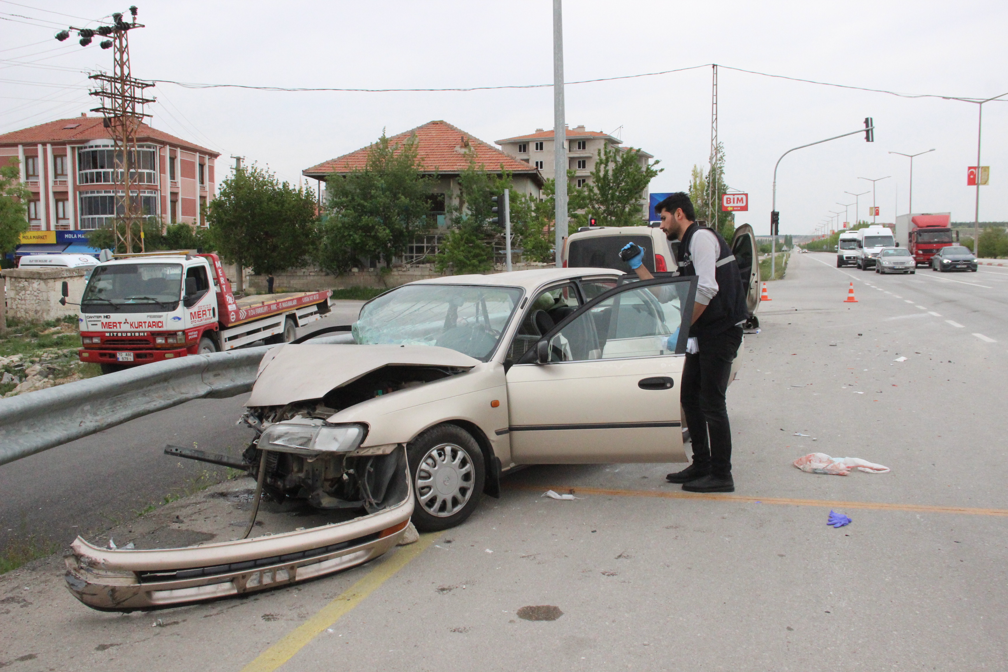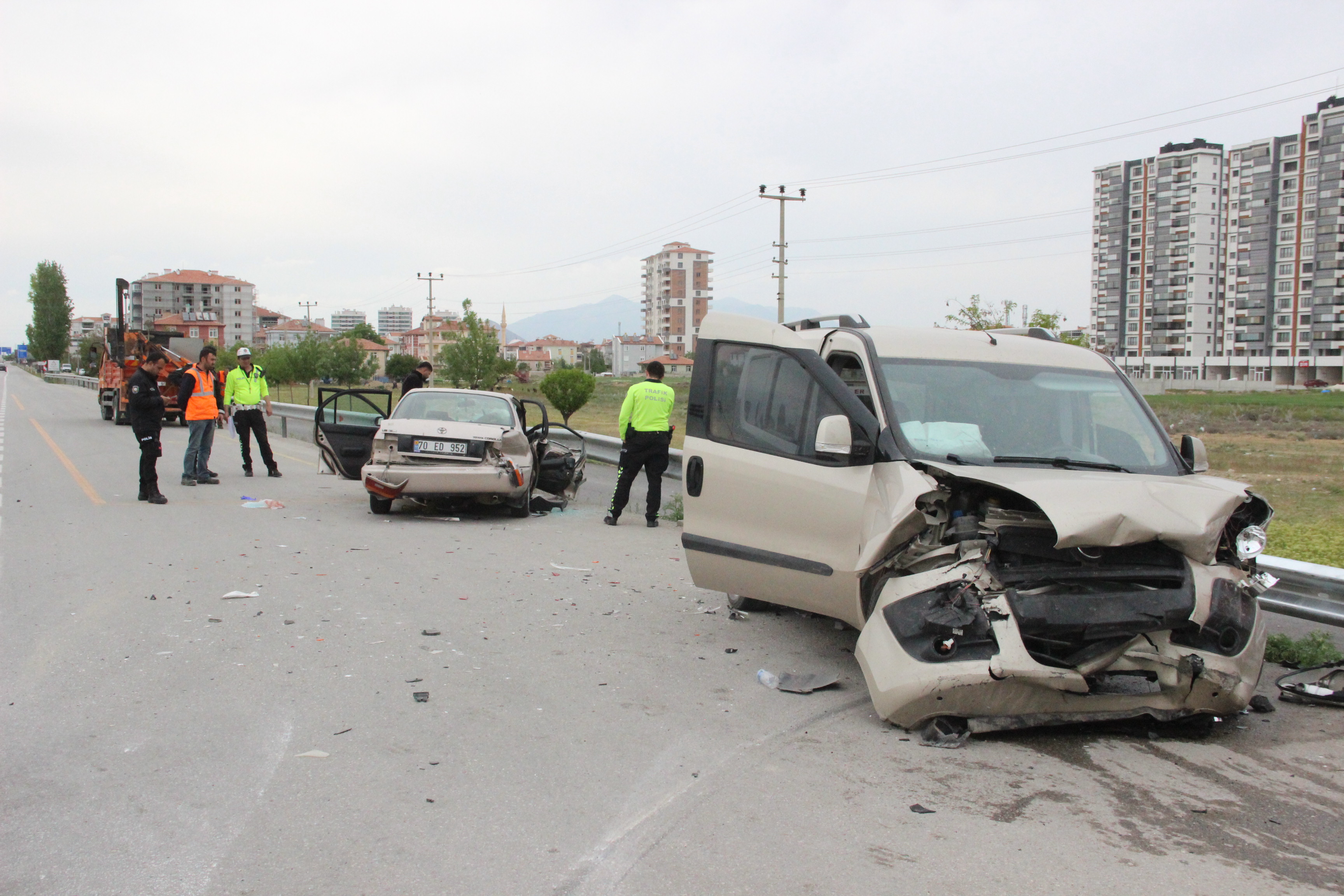 Edinilen bilgiye göre, L.E. idaresindeki 70 ED 952 plakalı otomobil, S.B. idaresindeki 70 ABL 600 plakalı hafif ticari araç ile yol üzerinde çarpıştı.