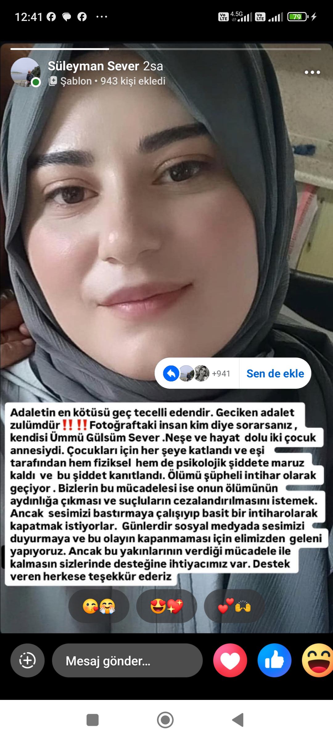 Aile, soruşturmanın yetersiz ilerlediğini savunuyor. Ümmü Gülsüm Sever’in eşi A.Ö.’nün haftalar sonra savcılık kararıyla evden özel eşyalarını aldığı, polis eşliğinde eşyaların taşındığı öğrenildi. Bu gelişmeye tepki gösteren aile üyeleri, “Deliller yok ediliyor, adalet engelleniyor” diyerek duruma isyan etti.