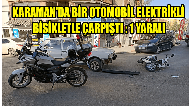 Alınan bilgilere göre, Atatürk Bulvarından Şamkapı Caddesine istikamet eden 31 yaşındaki H.Dinlerin kullandığı elektrikli bisikletle, 54 yaşındaki A.Ay'ın kullandığı 70 FA 076 plakalı otomobil çarpıştı.