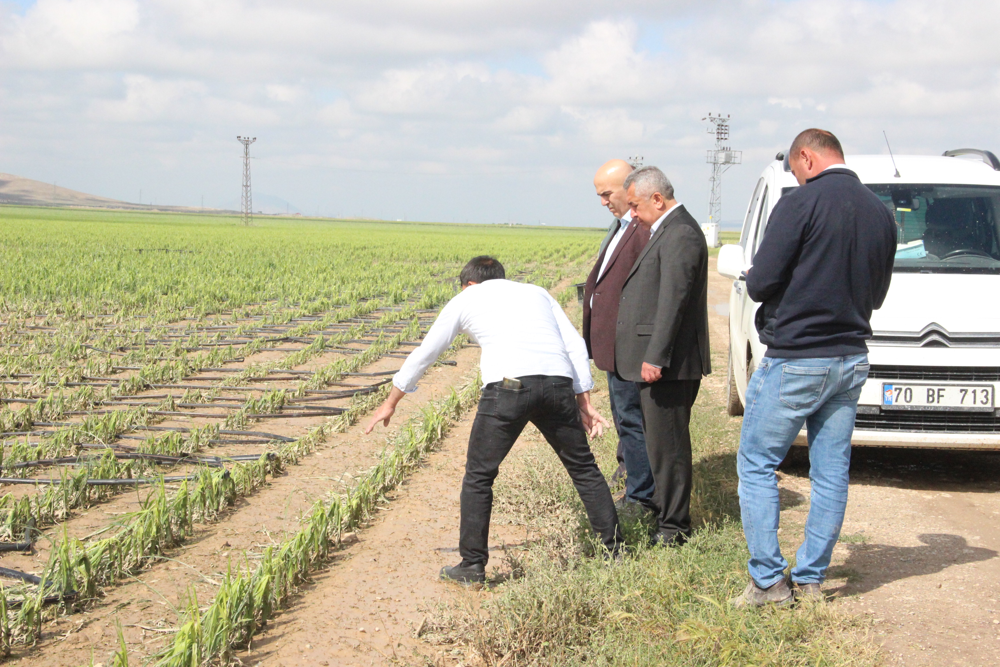 Karaman Ziraat Odası Başkanı Mehmet Bayram ile İl Tarım ve Orman Müdürü Yusuf Şahinbaş, merkeze bağlı Çoğlu ve Burunoba köylerinde doludan zarar gören mısır, patates ve pancar ekili arazilerde incelemelerde bulunarak çiftçilerden bilgi aldı. “2 bin dekar alanda zarar var”Karaman İl Tarım ve Orman Müdürü Yusuf Şahinbaş, yaşanan dolu nedeniyle ekili arazileri zarar gören üreticilere geçmiş olsun dileklerinde bulunarak, “Bugün dolunun zarar verdiği ekili arazileri gezerek incelemelerde bulunuyoruz. Şuanda görebildiğimiz kadarıyla mısır, patates ve pancar ekili yaklaşık 2 bin dekar alanda bir zarar görünüyor. İl Tarım ve Orman Müdürlüğü olarak vakit kaybetmeden önümüzdeki günlerde hasar tespit çalışmaları yapacağız. Yapacağımız tespitlerin ardından Cumhurbaşkanlığımızdan, bakanlığımızdan ve afet fonundan destek almaya çalışacağız. Önceki yıllarda da meydana gelen bu tür zararlardan Sayın Cumhurbaşkanımızın talimatı ile üreticilerimize hep destek geldi. Hükümetimiz her zaman üreticisinin yanında olmaya devam edecektir” dedi. “Devletimiz her zaman çiftçisinin yanındadır” Karaman Ziraat Odası Başkanı Mehmet Bayram da, bu sene bahar yağışlarımız oldukça iyi oldu ve Haziran ayı olmasına da rağmen halen devam ediyor. Yağışların bol ve bereketli olmasıyla beraber, bu tür afetlerde olmaya başladı. Karaman’ın bazı bölgelerinde sel ve dolu felaketleri yaşıyoruz. Dünde Çoğlu ve Burunoba köylerimiz de aniden yağan dolu ile birlikte arazilerdeki ürünlerin tamamen yok olduğunu gördük. Devletimiz her zaman olduğu gibi ekili alanları zarar gören üreticilerimizin yanında olacaktır.İl Tarım ve Orman Müdürümüzle bugün dolunun zarar verdiği alanlarda incelemelerde bulunarak tespit yapıyoruz. Yaptığımız tespit çalışmalarının ardından hazırladığımız raporları bakanlığımıza ileteceğiz“ diye konuştu. Çoğlu Köyü Muhtarı Selvet Sağlamoğlu ise, şuan yapacak bir şeyin olmadığını söyleyerek, “Devletin doludan ekili arazileri zarar gören çiftçilere yardım etmesini istedi. Yağan dolu nedeniyle patates tarlası tamamen zarar gören çiftçi Ramazan Sayma da, devletimizden destek ve yardım bekliyoruz“ dedi.