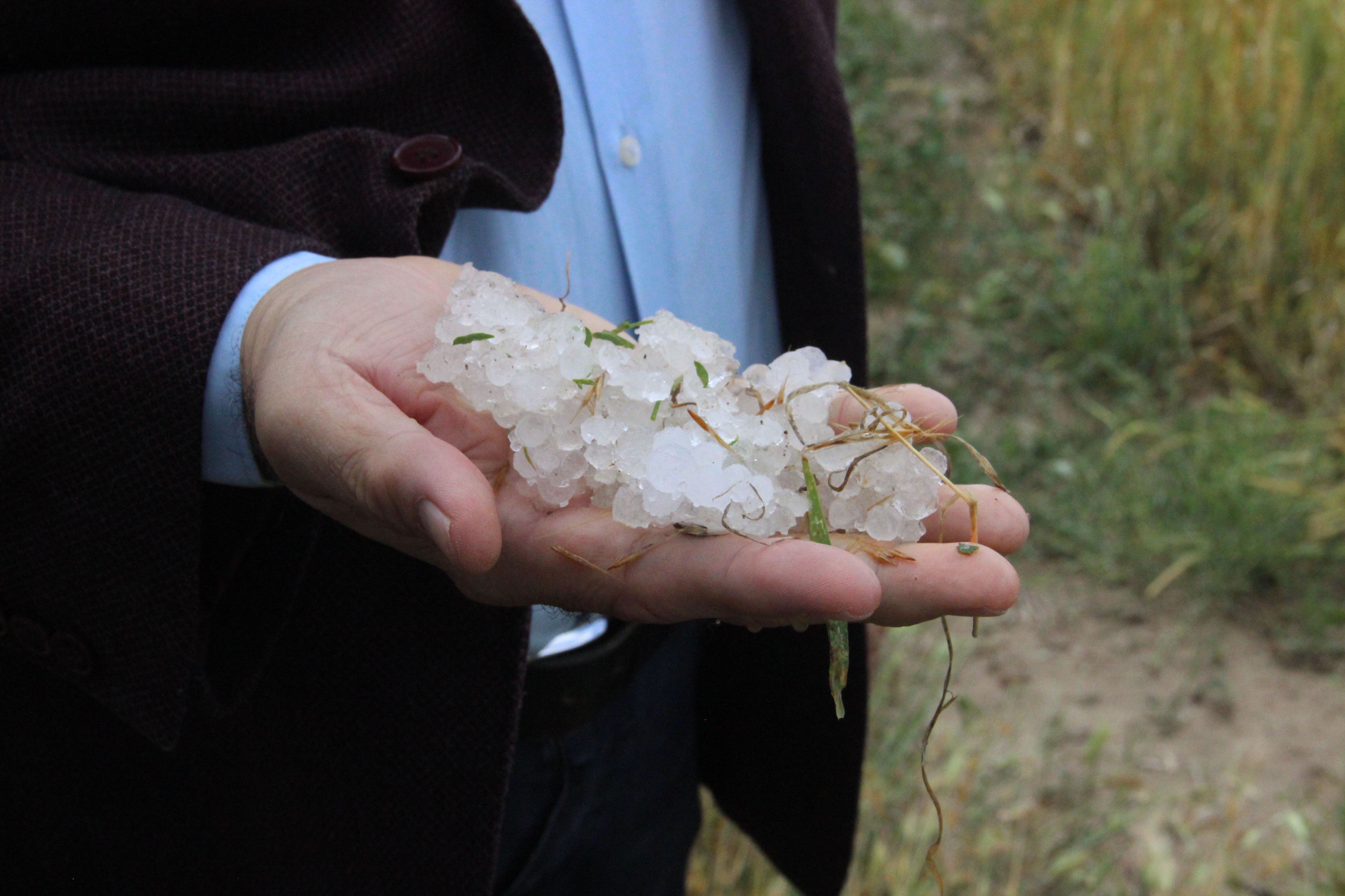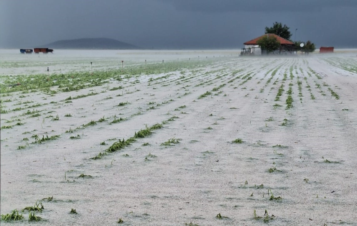 Karaman'da dolu ekili arazilere zarar verdi, tarlalar kış mevsimi gibi beyaza büründü