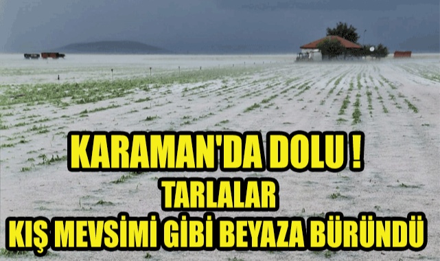 Karaman’da aniden başlayan ve yaklaşık 10 dakika süren dolu, ekili arazilere zarar verirken, tarlaları da adeta kış mevsimi gibi beyaza bürüdü.