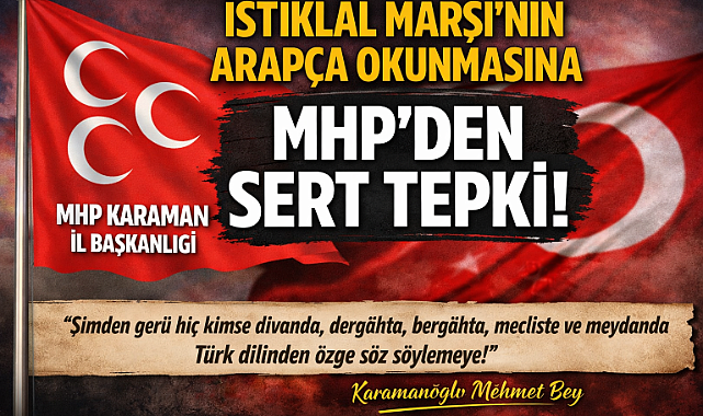 Karaman’da ‘İstiklal Marşı’nın Arapça Okunmasına MHP İl Başkanı Gözel’den TepkiMilliyetçi Hareket Partisi (MHP) Karaman İl Başkanı Muhammed Mustafa Gözel, 12 Mart İstiklal Marşı’nın kabul yıl dönümü dolayısıyla "12 Mart İstiklal Marşı'nın Kabulü ve Mehmet Akif Ersoy'u Anma" etkinlikleri çerçevesinde Piri Reis Kültür Merkezi'nde düzenlenen programda İstiklal Marşı’nın Arapça okunmasına tepki gösterdi.Milliyetçi Hareket Partisi (MHP) Karaman İl Başkanı Muhammed Mustafa Gözel olayla ilili yaptığı yazılı açıklamada İstiklal Marşı’nın Türk milletinin bağımsızlık mücadelesinin ve milli ruhunun en güçlü sembollerinden biri olduğu vurgulandı. Gözel, böylesine anlamlı bir günde milli marşın Türkçe dışında bir dilde okunmasının kabul edilemeyeceğini ifade etti.Karaman’ın tarihsel olarak Türk dilinin önemli merkezlerinden biri olduğuna dikkat çeken Gözel, açıklamasında şu ifadelere yer verdi:“Bugün İstiklal Marşı’nın kabulünün yıl dönümünü anarken, milletimizin kurtuluş mücadelesinin dizelere döküldüğü bu önemli günü hatırlıyoruz. Ancak Karaman gibi Türkçenin başkenti olarak anılan bir şehirde, milli ve resmi dilimiz olan Türkçe yerine İstiklal Marşı’nın Arapça telaffuz edilmesi kabul edilemez.”MHP Karaman İl Başkanı Gözel yaptığı açıklamada, milli marşın Türkçe dışında bir dilde okunmasının milli şuurla bağdaşmadığı belirtilerek yetkililere olayla ilgi sorumlular hakkında inceleme ve soruşturma yapılması çağrısı yapıldı. Açıklamada ayrıca, Türkçenin korunmasına yönelik tarihi fermanıyla bilinen Karamanoğlu Mehmet Bey’e atıfta bulunularak Türkçenin önemine vurgu yapıldı.Açıklamada ayrıca Karamanoğlu Mehmet Bey’in Türkçenin önemini vurgulayan tarihi sözlerine de yer verildi:“Şimden gerü hiç kimse divanda, dergâhta, bargâhta, mecliste, meydanda ve dahi her yerde Türk dilinden özge söz söylemeye.” (13 Mayıs 1277)