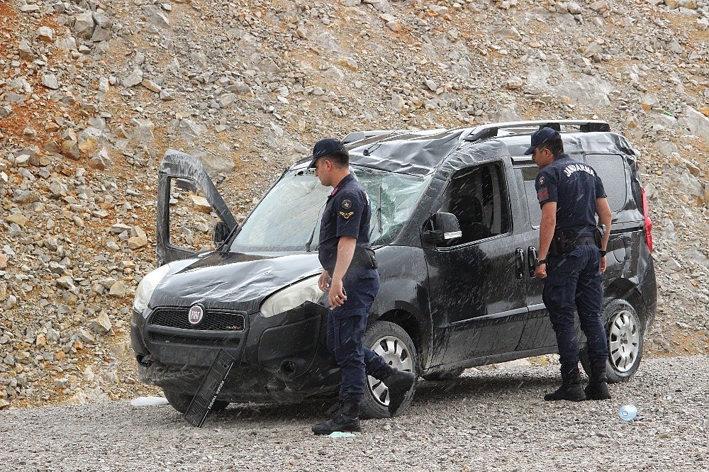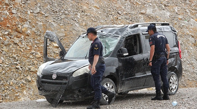 Karaman'da kontrolden çıkan hafif ticari aracın karşı şeride geçerek devrilmesi sonu sürücü yaralandı.