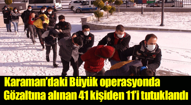 Alınan bilgiye göre, İl Emniyet Müdürlüğü Narkotik Suçlarla Mücadele Şube Müdürlüğü ekiplerince üç gün önce gözaltına alınan şüphelilerden 13'ünün emniyetteki işlemleri tamamlandı. Adliyeye sabah erken saatlerde sevk edilen zanlılardan 11'i çıkarıldıkları mahkemece tutuklanarak karaman M Tipi Kapalı Cezaevine gönderilirken, 2 şüpheli adli kontrol şartıyla serbest bırakıldı.