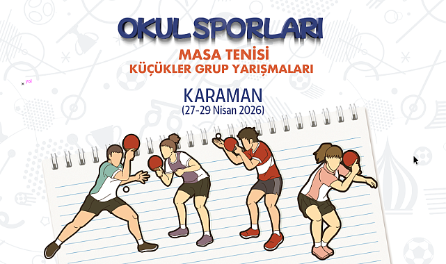 Okul Sporları Masa Tenisi Küçükler Kız-Erkek Grup Müsabakaları, 27-29 Nisan 2026 tarihleri arasında Karaman’da düzenlenecek. Gençlik ve Spor Bakanlığı Spor Hizmetleri Genel Müdürlüğü Okul Sporları Daire Başkanlığının 2026 yılı faaliyet programında yer alan organizasyon, Karaman Gençlik ve Spor İl Müdürlüğü ev sahipliğinde gerçekleştirilecek.