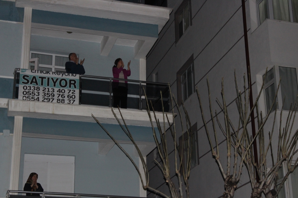 Vatandaşlar sağlık çalışanlarına destek amaçlı Türkiye’nin her yerinde olduğu gibi Karaman'da da saat 21:00’da balkon ve pencerelerine çıkarak sağlık çalışanlarının insan üstü eforlarını alkışladı.