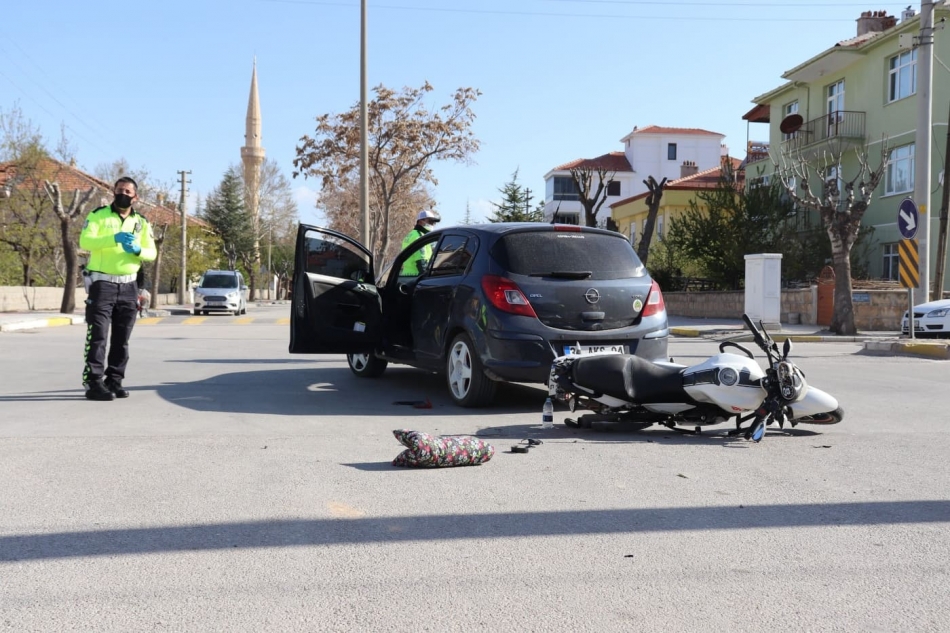 Karaman'da bir kavşakta motosiklet ile otomobilin çarpışması sonucu meydana gelen trafik kazasında bir kişi yaralandı.