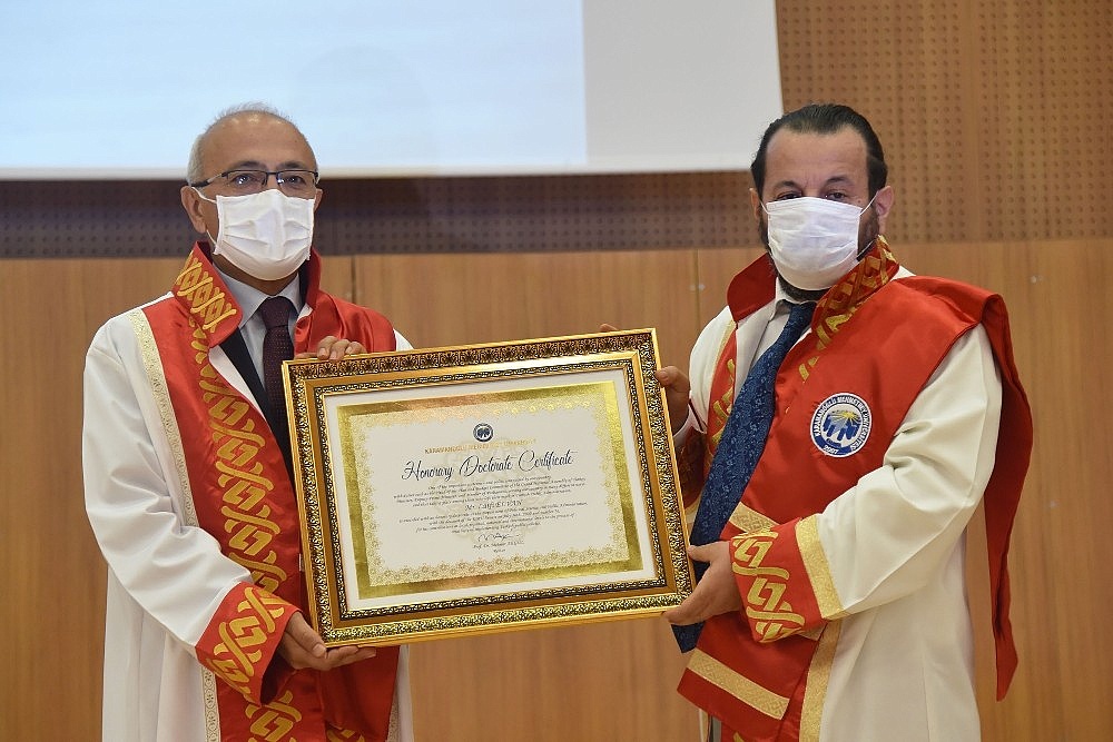 Karamanoğlu Mehmetbey Üniversitesinin 2020-2021 eğitim-öğretim yılı açılışı ve fahri doktora unvanı takdim töreni gerçekleştirildi.