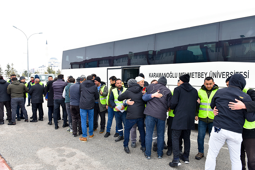 Merkez üssü Kahramanmaraş Pazarcık olan ve birçok ilimizi olumsuz etkileyen depremler nedeniyle, ihtiyaç sahibi vatandaşlarımıza yardım elini uzatan Karamanoğlu Mehmetbey Üniversitesi, depremden en çok etkilenen Hatay’a arama kurtarma çalışmaları için 29 kişilik ekip gönderdi. 29 kişilik ekip, yanlarındaki ihtiyaç malzemeleriyle birlikte yola çıktı.Karamanoğlu Mehmetbey Üniversitesi Rektör Yardımcısı Prof. Dr. Münir Oktay, Hatay'a gitmek üzere yola çıkan 29 gönüllü KMÜ ekibini uğurlayarak çalışmalarında başarı ve kolaylıklar diledi.