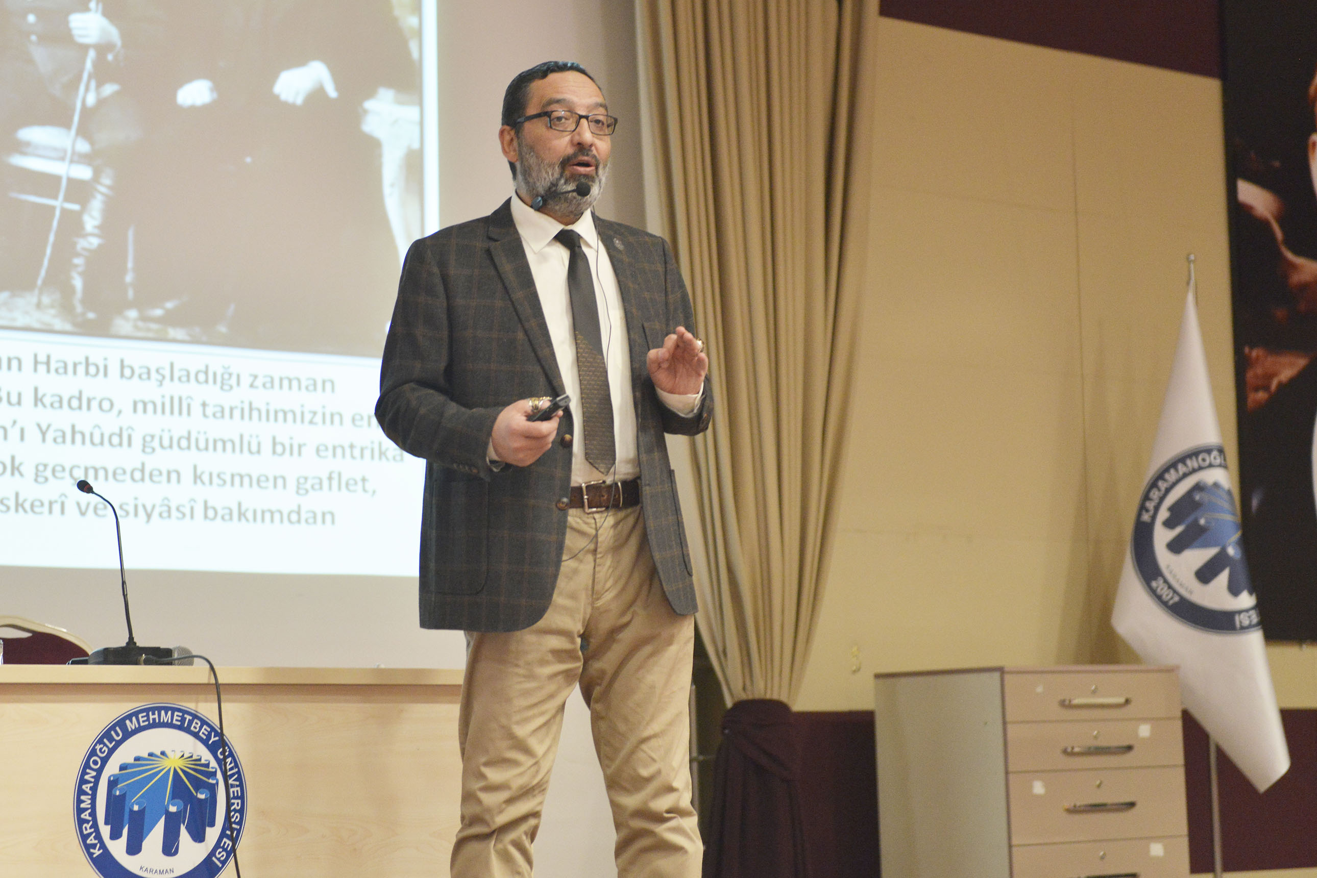 Karamanoğlu Mehmetbey Üniversitesi Spor Bilimleri Fakültesi ile Yunus Emre ve Hoşgörü Öğrenci Topluluğu (YUNUSCA) tarafından 'Vaktin Onbaşı Seyit'i Şehit Ömer Halisdemir ve Çanakkale Ruhu' konulu söyleşi düzenlendi.