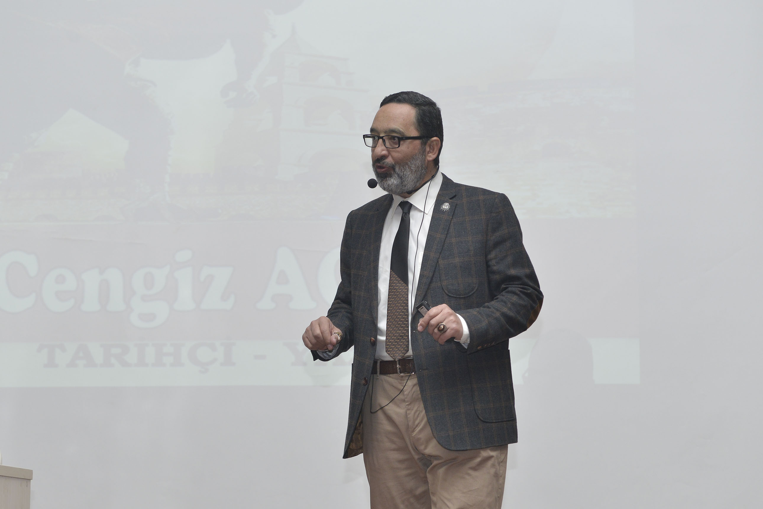 18 Mart Çanakkale Zaferi ve Şehitleri Anma Günü dolayısıyla düzenlenen ve Tarihçi Yazar Cengiz Acar'ın konuşmacı olarak katıldığı söyleşiye Karaman Belediye Başkan Yardımcısı Eyüp Hüsamettin Aslan, Spor Bilimleri Fakültesi Dekan V. Prof. Dr. Sefa Lök, Genel Sekreter V. İbrahim Karagöz, üniversite personeli, davetliler ve öğrenciler katıldı.