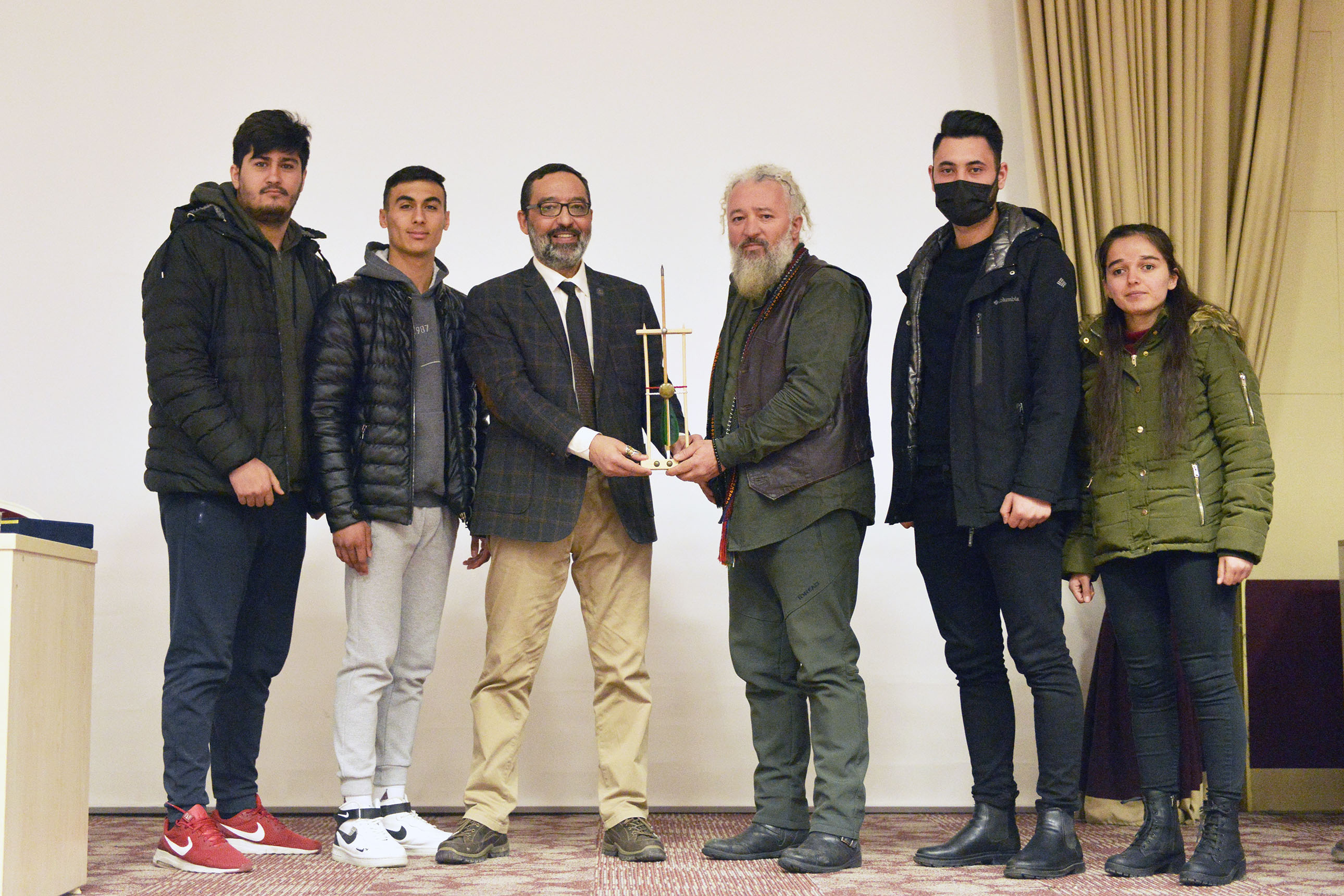 Doç. Dr. Okan Celal Güngör ise Mehmet Akif Ersoy’un hayatı ve İstiklal Marşı’nın kabulü ile ilgili bilgiler paylaştı. Güngör, Mehmet Akif Ersoy’un sanatkâr yönüyle dikkat çeken örnek bir şahsiyet olduğunu hatırlatarak konuşmasını şöyle sürdürdü: “Çok zor zamanlardan geçmiş olmasına rağmen içinde hiçbir zaman umutsuzluk olmamıştır. Bu kararlı hali milli duygularına ve eserlerine de yansımıştır. Akif, fevri hislerinden ziyade toplumsal olayları kaleme alan bir şairdir. Halkın dilini benimsemiştir ve Türkçeyi bütün canlılığı ile eserlerine taşımıştır.”