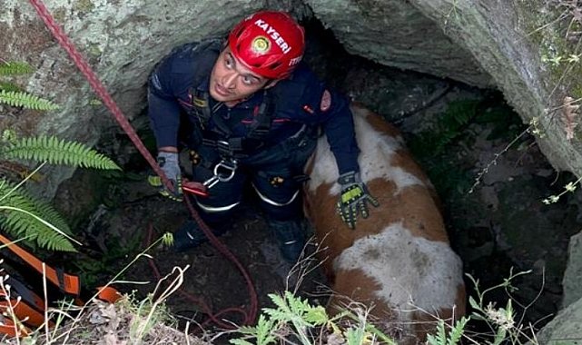 Kayseri'nin Talas ilçesi Kamber Mahallesi’nde besici Harun Aksoy, kendisine ait olan büyükbaş hayvanın 3 metrelik kuyuya düşmesi sonucu itfaiye ekiplerine ihbarda bulundu. Büyükşehir Belediyesi itfaiye ekipleri, gelen ihbar üzerine kısa sürede bölgeye gitti.Kuyuya düşen büyükbaş hayvan itfaiye ekipleri tarafından 2 saatlik çalışma ile kurtarılarak hayvan sahibi Harun Aksoy'a teslim edildi. Ekiplerin, zorlu şartlar altında büyükbaş hayvanı kurtarmak için canla, başla mücadelesi amatör kameralara da yansıdı. Ekiplerin operasyonu sonrası besici Aksoy, Büyükşehir itfaiye ekiplerine teşekkür ve dua etti.Kayseri Büyükşehir Belediye Başkanı Dr. Memduh Büyükkılıç'ın talimatıyla daha da güçlendirilen Büyükşehir İtfaiye Teşkilatı, 17 istasyon, 55 araç ve 347 personel ile yangın ve diğer olaylara daha etkili ve güvenli bir şekilde müdahale edebilirken, yangın ve doğal afetlerin yanı sıra, tehlikeye düşmüş tüm canlıların canlarını korumak ve kurtarmak için görevini başarıyla sürdürüyor.