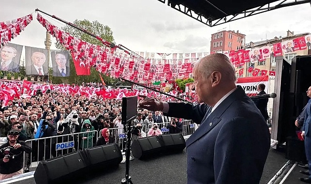 "Türkiye’yi yıkmak için el birliği yapan zillet ve zulüm cephesini perişan etmek için sıra sizde" diyen Bahçeli, “Vatan ve bayrağa sahip çıkmak için söz, karar, yetki hepinizde. Bizim tarafımız belli, istikametimiz sıratı müstakim üzeredir. Himaye edenimiz Allah, destekçimiz büyük Türk milletidir. Açık hesap 14 Mayıs 2023 Pazar günü sandıkta görülecektir. Dünyaya istikamet verecek kudrette bir Türkiye’nin inşası, ancak ve ancak Türk-İslam kültüründen feyzini alan, Türklük gurur ve şuuru ile İslam ahlak ve faziletiyle bezenen fedakarlık numunesi bir ahlaki kucaklaşmayla mümkün olacaktır. Bu ahlaki kucaklaşmanın adı Cumhur İttifakı’dır. Muazzez nitelikli milli ve ahlaki kucaklaşmanın devlet ve millet hayatında kök salmasına da Cumhurbaşkanlığı Hükümet Sistemi refakat edecektir. Cumhurbaşkanlığı Hükümet Sistemi’nin uzlaşmacı vasfında temerküz etmiş güçlü ve tesirli yürütme, güçlü ve fonksiyonel yasama, bağımsız ve tarafsız yargı sayesinde Türkiye’nin önünü hiçbir iç ve dış ihanet odağı kesemeyecektir. Bu kutlu yürüyüşün neticesinde “Gelen Türk Asrı, Geleceğin Gücü Türkiye” olacaktır. İnancımız budur, iddiamız budur, irademiz budur" diye konuştu.