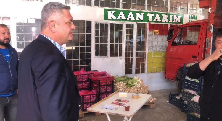 Zorlu, hal esnafı ve hayvan pazarındaki üreticilerle bir süre hasbihal edip, hayırlı ve bol kazançlı işler diledi.