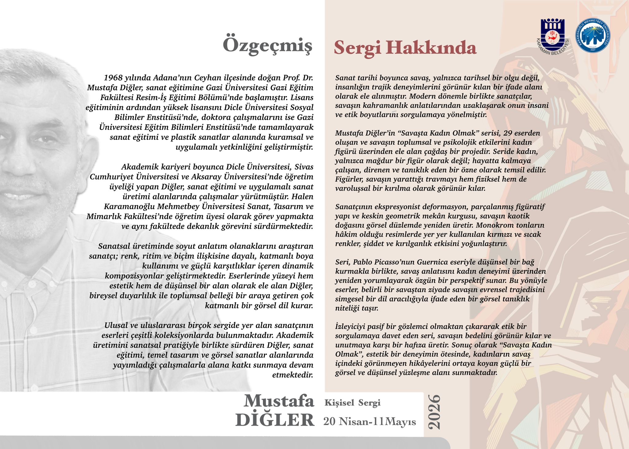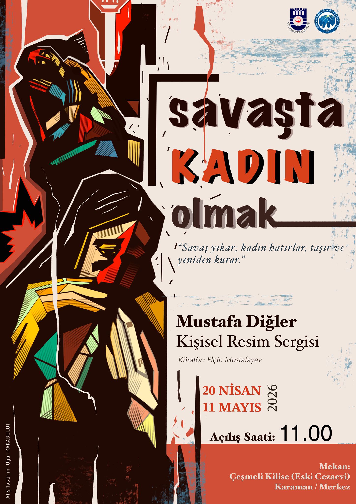 Karaman Belediyesi ile Karamanoğlu Mehmetbey Üniversitesi (KMÜ) Sanat, Tasarım ve Mimarlık Fakültesi iş birliğinde düzenlenen etkinlik kapsamında, Fakülte Dekanı Prof. Dr. Mustafa Diğler’in “Savaşta Kadın Olmak” adlı kişisel resim sergisi 20 Nisan’da sanatseverlerle buluşacak.