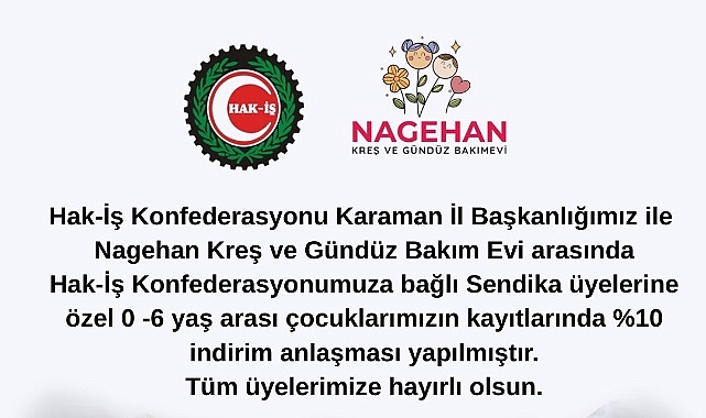 Protokol kapsamında, Hak-İş Konfederasyonu'na bağlı sendikalara üye olan kişilerin 0-6 yaş aralığındaki çocuklarınınNagihan Kreş ve Gündüz Bakımevi'ne kayıtlarında %10 oranında indirim uygulanacaktır.
