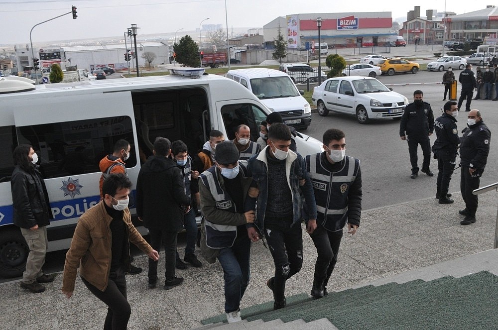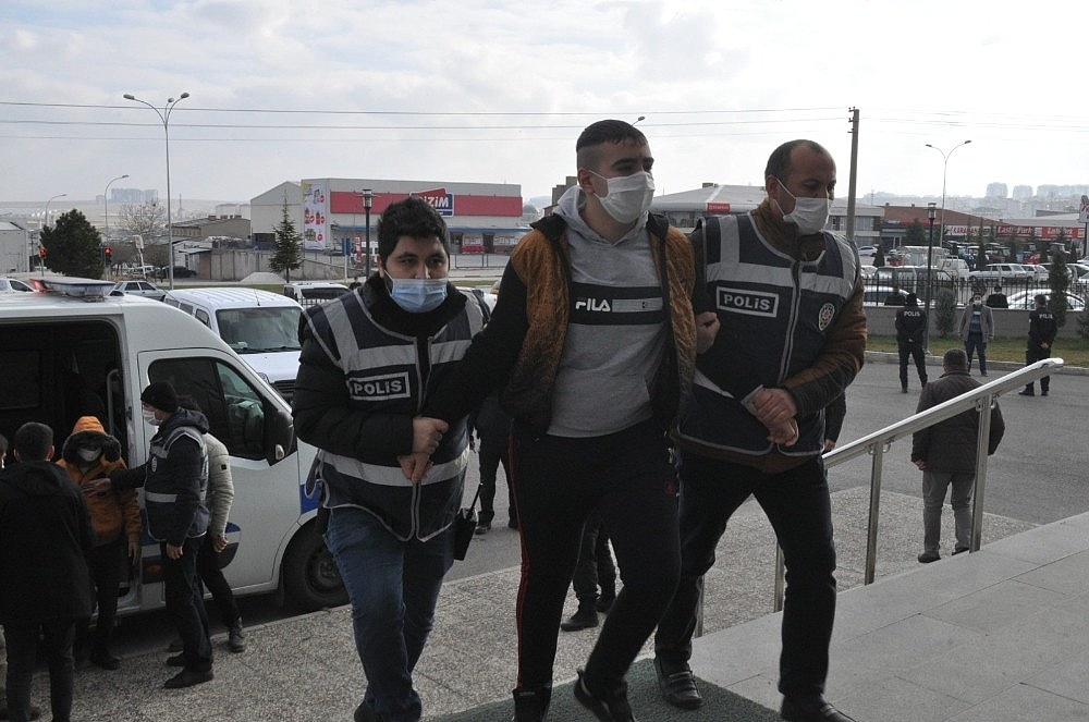 Emniyet Müdürlüğünde işlemleri tamamlanan 6 kişi, polisin geniş güvenlik tedbirleri arasında adliyeye getirildi. 6 zanlı daha sonra çıkarıldıkları mahkemece 'Tasarlayarak kasten adam öldürme' suçunda tutuklanarak Karaman M Tipi Kapalı Cezaevine gönderildi. A.A'nın 9, M.Ü'nün 14, S.A'nın 7, M.C.E'nin 9, A.F.G'nin 5 suç kaydı olduğu öğrenildi.