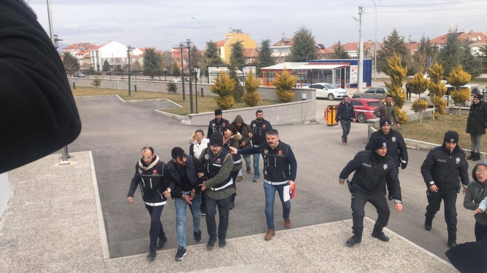 Karaman'a uyuşturucu madde ticareti yaptıkları iddia edilen 3 şüpheli adliyeye sevk edilirken yakınları küfürler ederek gazetecilere saldırdı.