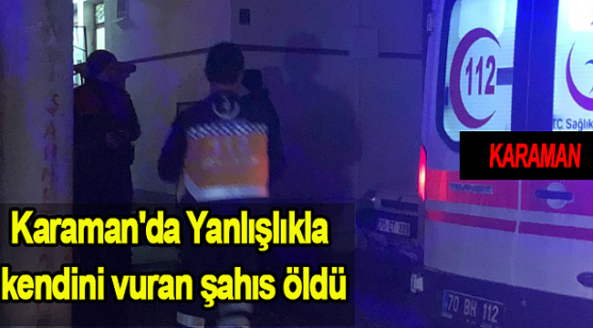 Karaman'da Bayram C isimli bir kişi evinde tüfek temizlerken kendini vurması sonucunda olay yerinde hayatını kaybetti. Olay bugün saat 22:00 sıralarında Gazidükkan Mahallesi Şehit Ahmet Taşer Caddesi üzerinde bir evde meydana geldi.