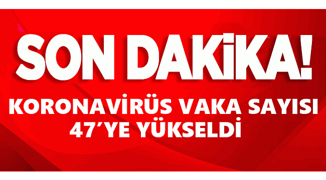 Sağlık Bakanı Fahrettin Koca sosyal medya hesabından, bugün konan 29 yeni tanı ile toplam vaka sayısının 47'ye yükseldiğini açıkladı.Bakan Koca, “Bugün 29 yeni tanı kondu. Yeni tanı konanlarla birlikte toplam hasta sayımız 47 oldu. Son 29 vakanın tamamı doğrudan veya dolaylı olarak ABD, Ortadoğu ve Avrupa temaslıdır, 3’ü Umreden döndü. Yurt dışı teması risk olmaya devam edecek. Tedbirleri sıkı uygulayalım.” dedi.