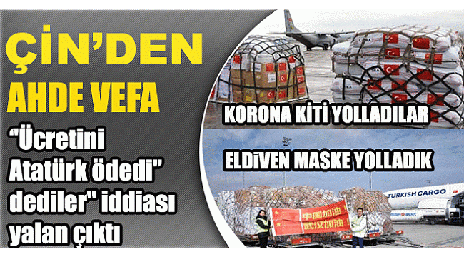 Sosyal medya mecralarında yayılan ve ''Çin 2 milyon koronavirüs kitini ücretsiz gönderdi'' ve ''Ücretini Atatürk ödedi'' dediler.' iddiasının aslının olmadığı ortaya çıktı