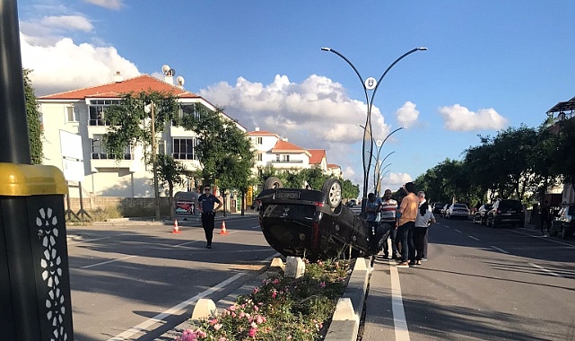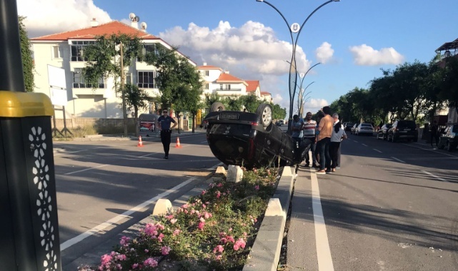 YAYA'YA ÇARPMAMAK İÇİN DİREKSİYONU ÇEVİREN BAYAN SÜRÜCÜ TAKLA ATTI