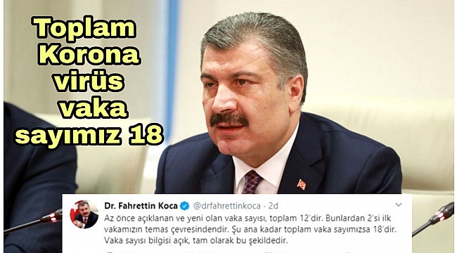 Daha sonra Twitter hesabından yeni bir paylaşım daha yapan Sağlık Bakanı Fahrettin Koca, "Az önce açıklanan ve yeni olan vaka sayısı, toplam 12'dir. Bunlardan 2'si ilk vakamızın temas çevresindendir. Şu ana kadar toplam vaka sayımızsa 18'dir. Vaka sayısı bilgisi açık, tam olarak bu şekildedir" ifadelerini kullandı.